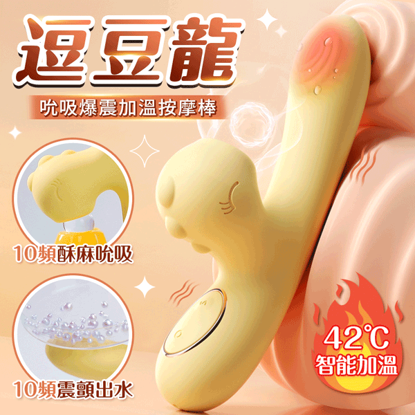 謎姬|逗豆龍 吸吮震動加溫按摩棒|月牙黃
